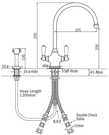 Featuring beautiful porcelain inserts on the lever handles, the elegant Phoenician sink mixer is a timeless addition to your kitchen design.Key features