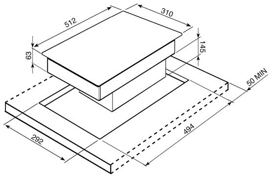 NB: Please note that an extra deep worktop is required should this hob be fitted directly above an oven.