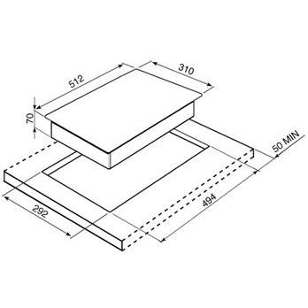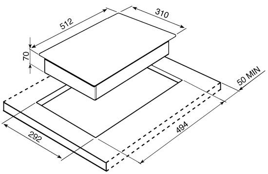 NB: Please note that an extra deep worktop is required should this hob be fitted directly above an oven.