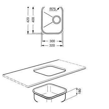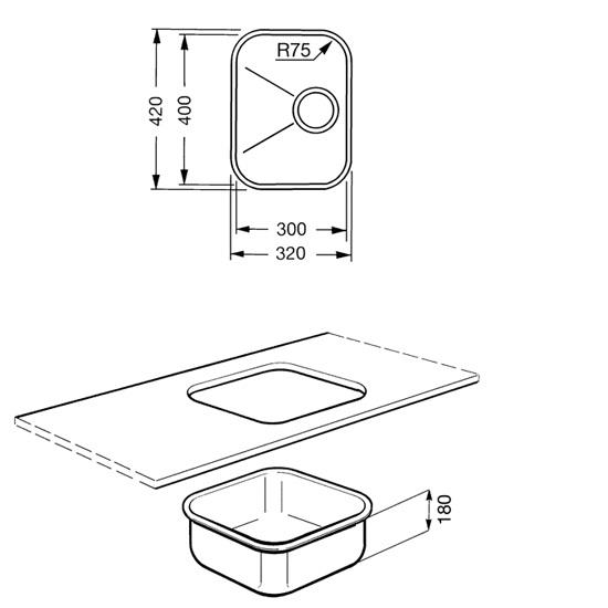 Undermounted single bowlBowl depth: 1 x 180mm